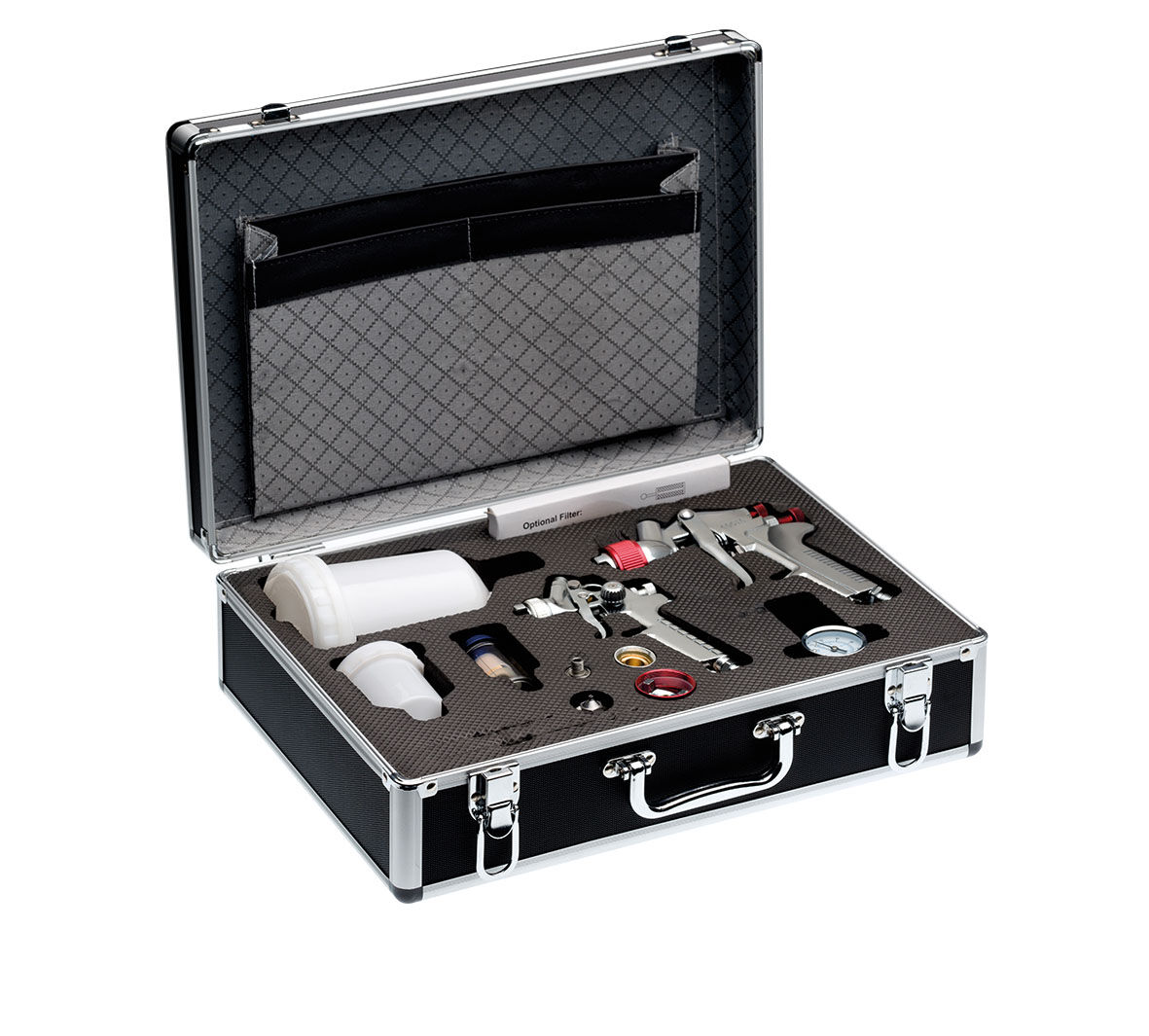 CAJA DE ALUMINIO CON 2 PISTOLAS HVLP Y 4 BOQUILLAS (0,8/1,0/1,4/1,8 MM) Artículo: 12532
