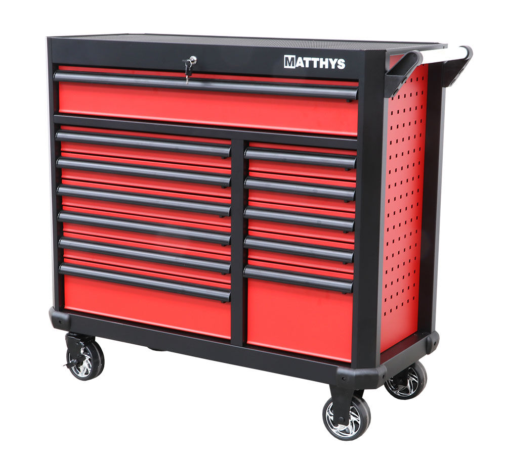 Puede mover este carro de herramientas sin esfuerzo por todo el taller para tener siempre las herramientas a mano dondequiera que esté. Cuando termine, podrá volver a colocar el carro portaherramientas en su sitio. Este carro de herramientas le permite clasificar sus herramientas y encontrarlas fácilmente cuando las necesite. De este modo, no perderá nada de su valioso tiempo. Gracias a su cierre centralizado, el carro portaherramientas también puede cerrarse con llave.