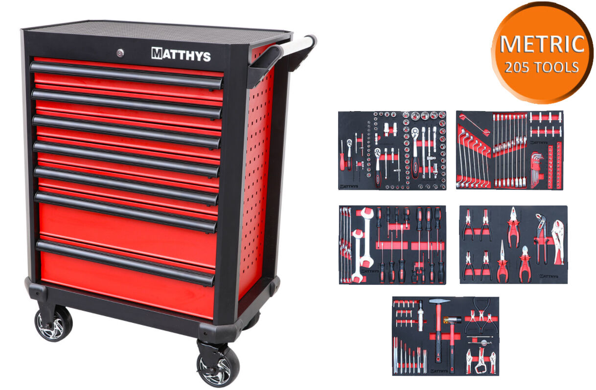 CARRO DE TALLER CON 205 HERRAMIENTAS MÉTRICAS EN BANDEJA DE ESPUMA Artículo: TCG-00-07-F