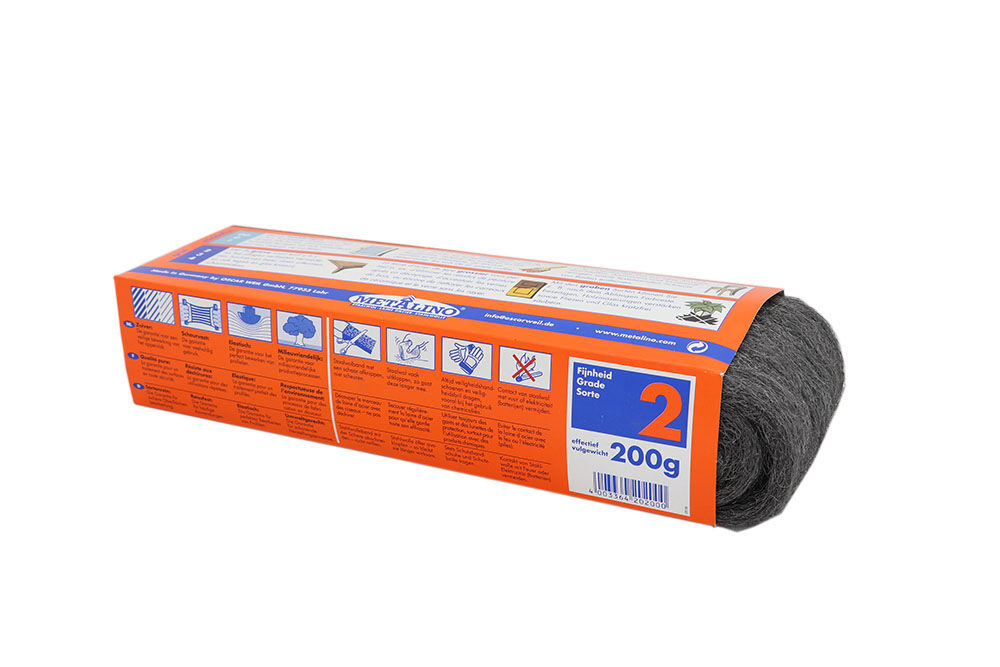 Esta lana de acero de 2 medium se utiliza para limpiar y pulir todo tipo de superficies metálicas sin pintar, como acero inoxidable, aluminio, cobre y latón.