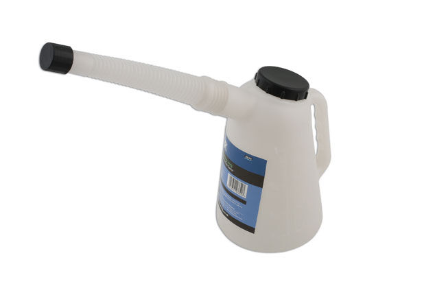 Apta para todo tipo de fluidos, incluidos la gasolina y el gasóleo, esta jarra dosificadora de 1 l con boquilla flexible viene con tapones para evitar derrames o contaminación.- Capacidad: 1 litro