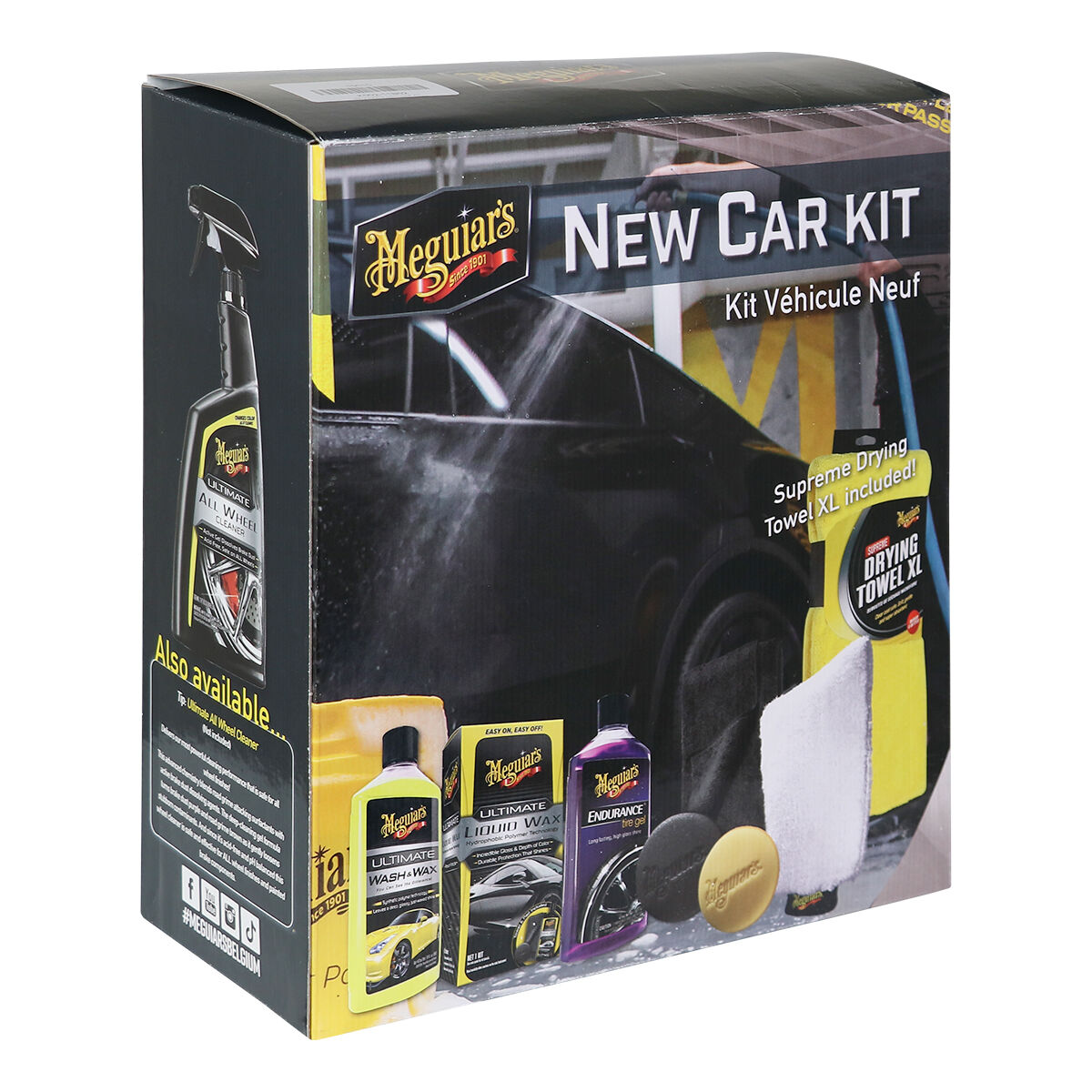 es el conjunto de cuidado completo para dar a tu coche (nuevo) un verdadero aspecto de exposición. Con productos cuidadosamente seleccionados de la gama Ultimate, este kit ofrece todo lo necesario para limpiar, proteger y hacer brillar la pintura, las ruedas y los neumáticos. La incorporación de la Supreme Drying Towel XL hace que el secado sea más rápido, seguro y eficiente que nunca.