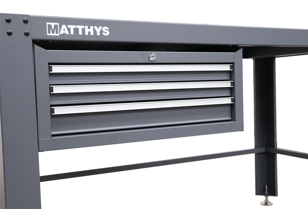 Un banco de trabajo metálico es la base ideal para cualquier taller o garaje. Gracias a su robusta estructura de acero, su gran capacidad de carga y su larga vida útil, ofrece la máxima estabilidad en cualquier tarea. Las patas ajustables garantizan que el banco de trabajo se mantenga siempre perfectamente estable, incluso en superficies irregulares. Así podrás trabajar de forma eficiente, segura y cómoda, una y otra vez.