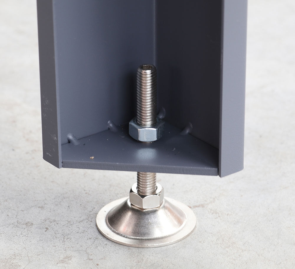- Patas de soporte ajustables para nivelar el banco de trabajo. Puede utilizarse en superficies irregulares