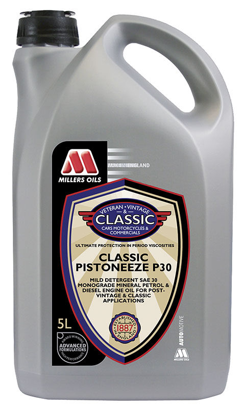 Classic Pistoneeze 30 es especialmente adecuado para vehículos clásicos y de preguerra en los que se requiere un aceite monogrado y el propietario está seguro de que no hay suciedad ni residuos en el cárter. Este aceite monogrado también es ideal para coches fabricados entre 1940 y 1960 con filtros de aceite superiores diseñados para funcionar con aceites monogrado con aditivos detergentes y dispersantes.