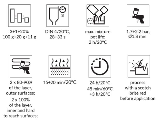 - Este epoxi está especialmente diseñado para la renovación de coches clásicos. Perfectas propiedades anticorrosión. Perfectas propiedades aislantes. Se pueden aplicar capas gruesas. Muy buena resistencia química. Muy buena resistencia mecánica.