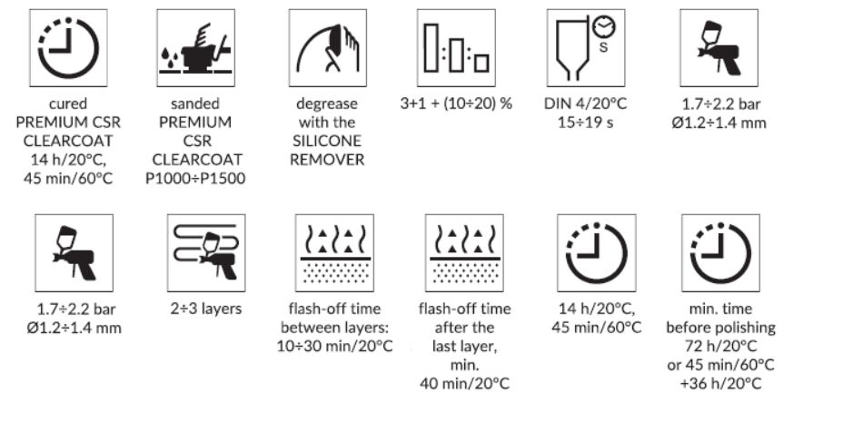 - Innovador sistema de recubrimiento resistente a los arañazos (CSR). Excelente fluidez. Largo tiempo abierto para pintar grandes superficies (coche entero). Muy alta resistencia a los rayos UV. Alto contenido en sólidos.