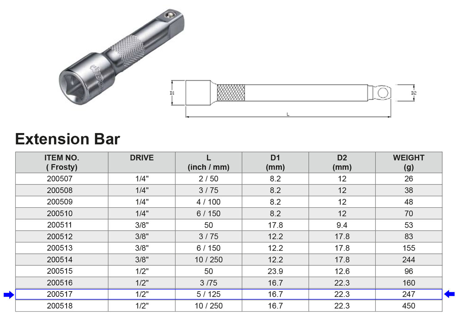 PROLONGADOR 1/2” 125 MM Artículo: 200517