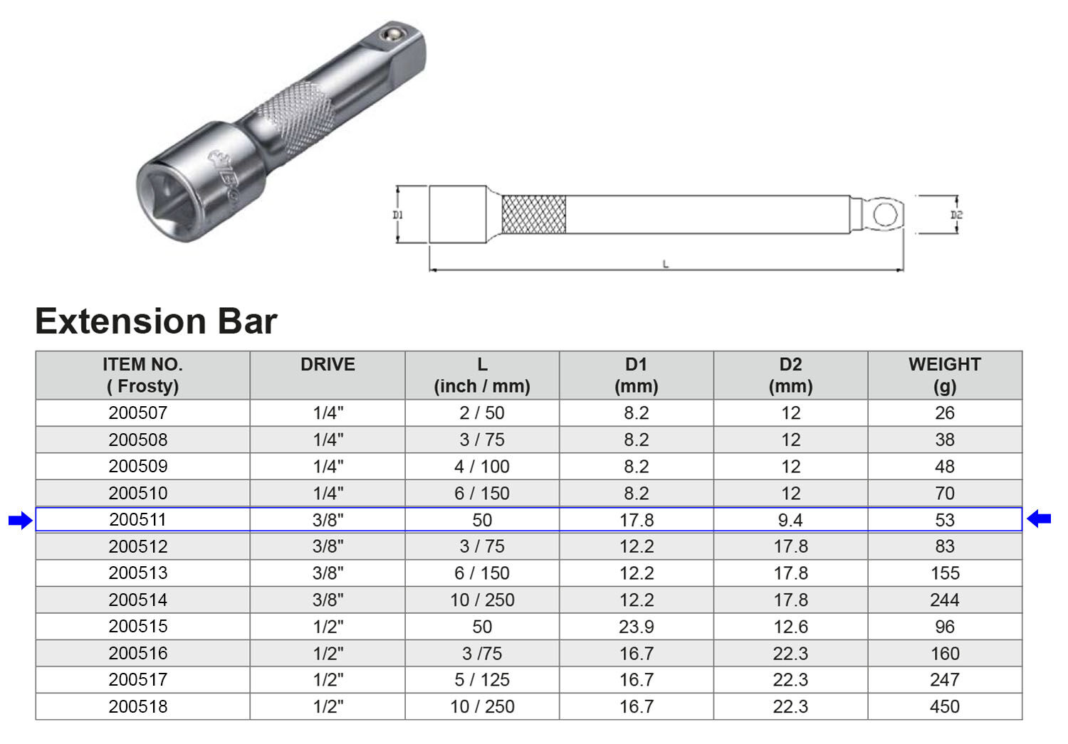 PROLONGADOR 3/8” 50 MM Artículo: 200511
