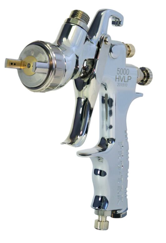Pistola HVLP con atomización extremadamente fina que proporciona una capa lisa y uniforme al aplicar laca base, laca transparente y productos monocapa.