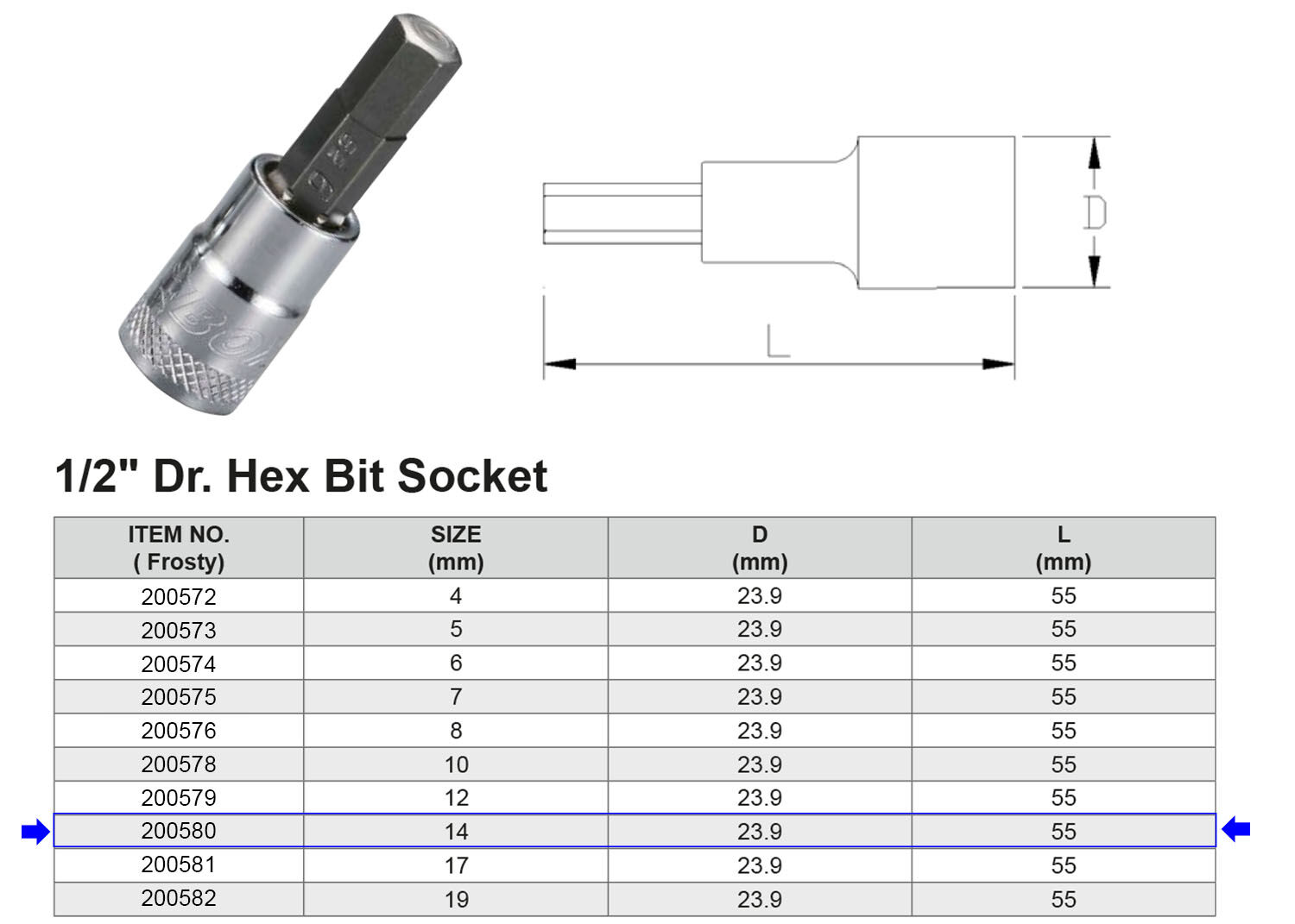 PUNTA HEX H14 1/2” Artículo: 200580