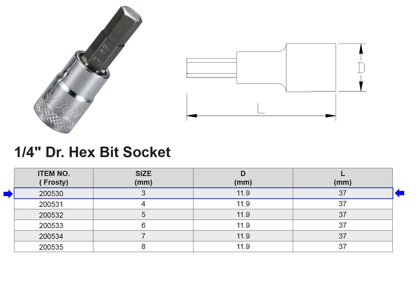 PUNTA HEX H3 1/4” Artículo: 200530