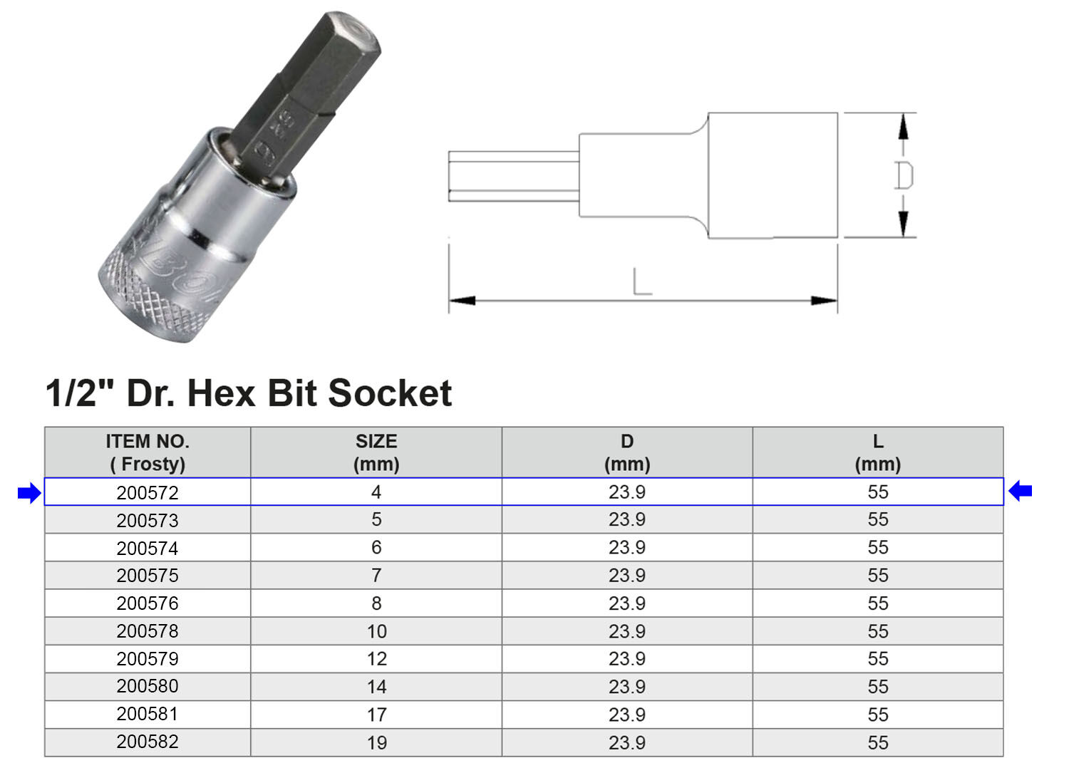 PUNTA HEX H4 1/2” Artículo: 200572