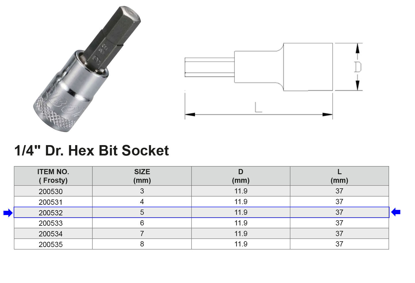 PUNTA HEX H5 1/4” Artículo: 200532