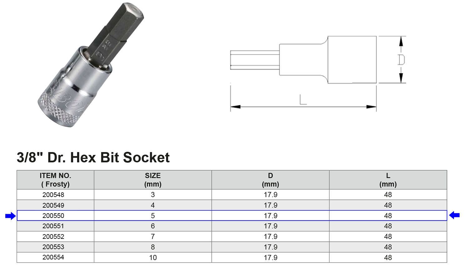 PUNTA HEX H5 3/8” Artículo: 200550