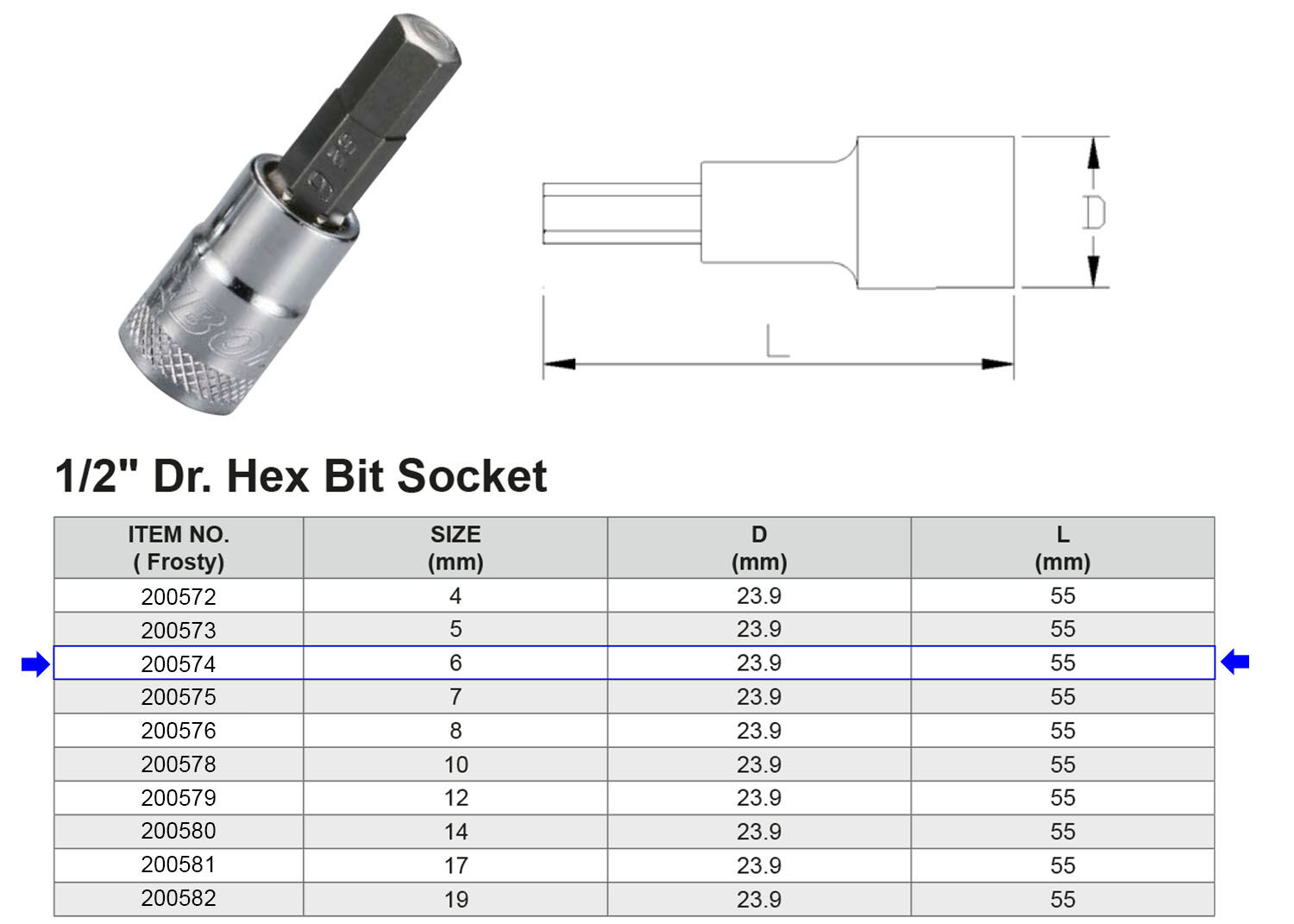 PUNTA HEX H6 1/2” Artículo: 200574