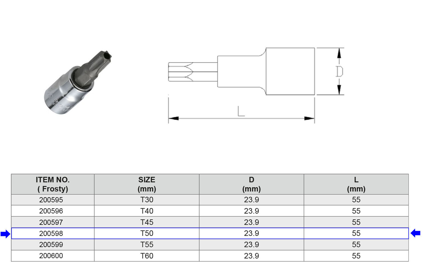 PUNTA TORX PERFORADA (ANTISABOTAJE) TP50 1/2” Artículo: 200598