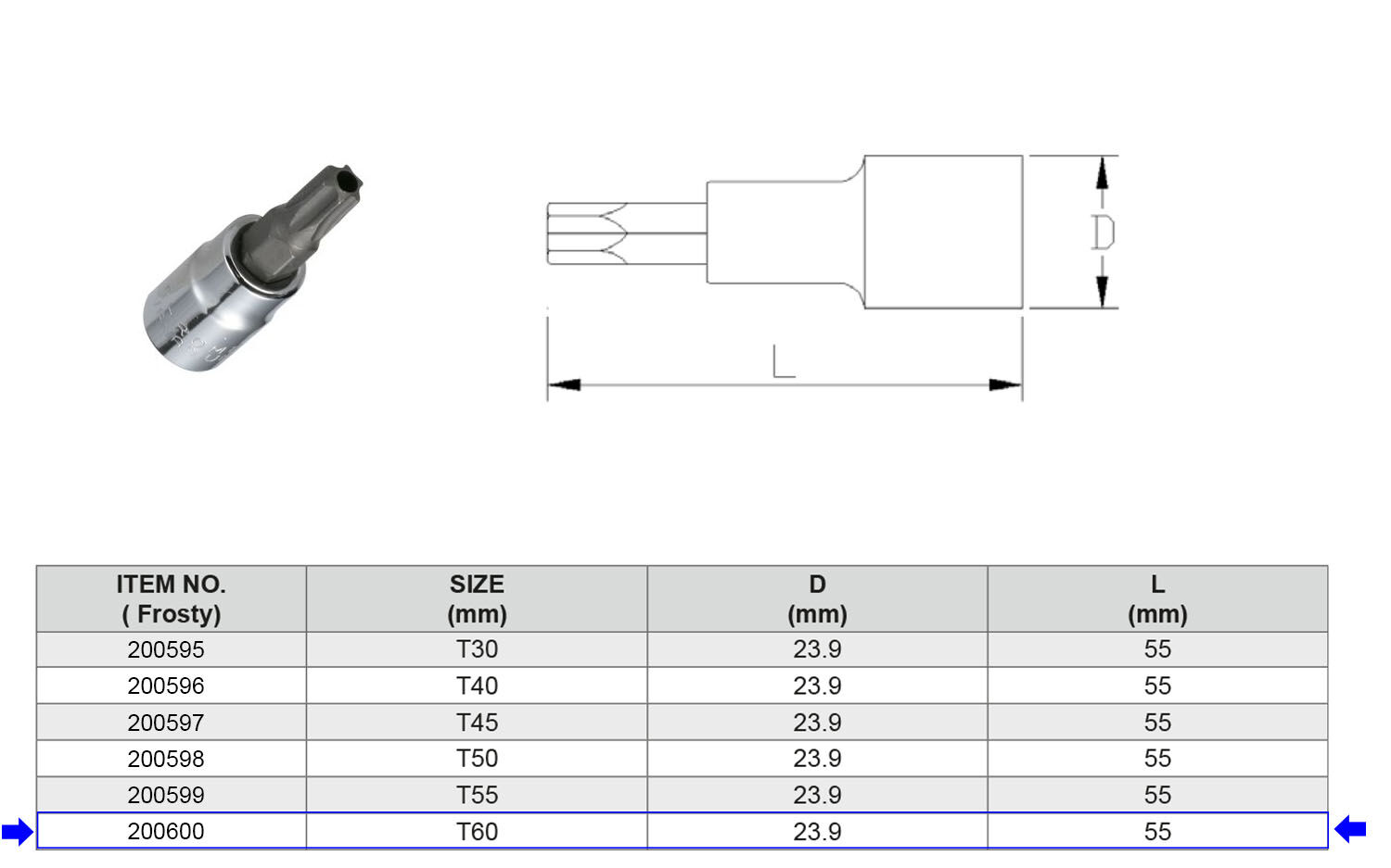 PUNTA TORX PERFORADA (ANTISABOTAJE) TP60 1/2” Artículo: 200600