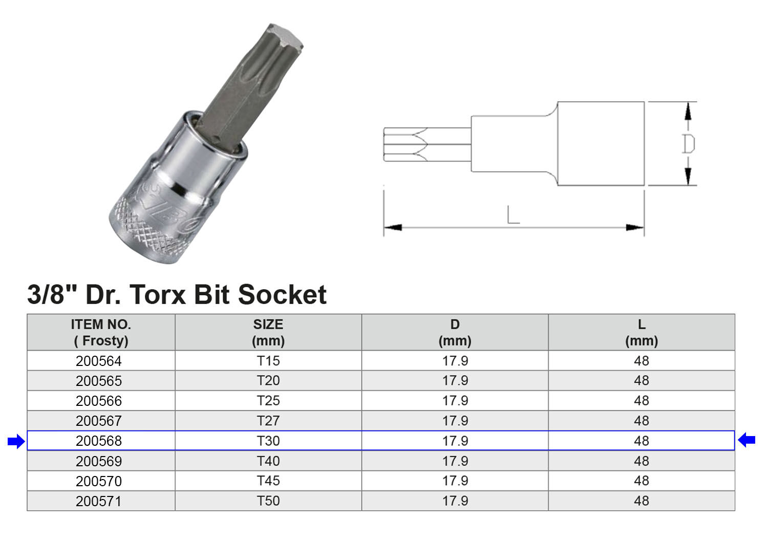 PUNTA TORX T30 3/8” Artículo: 200568