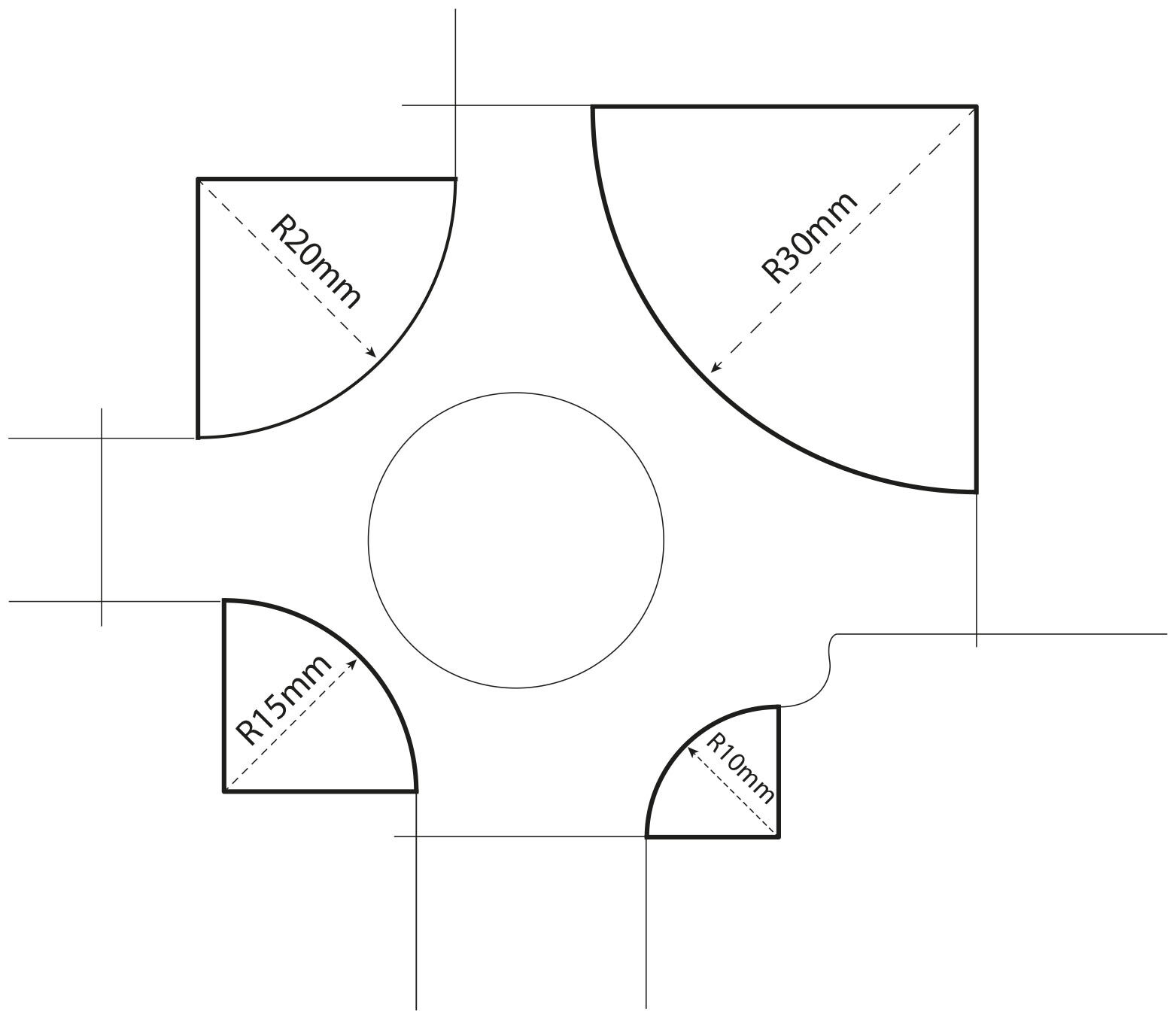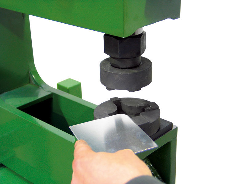 Este punzón de radio de esquina es ideal para cortar esquinas de piezas de trabajo con diferentes radios. Tamaños (pulgadas): 1 1/4, 1 1/2, 1 3/4, 2 incluidos. Capacidad máxima: 1,5 mm de acero dulce. Máquina no incluida.