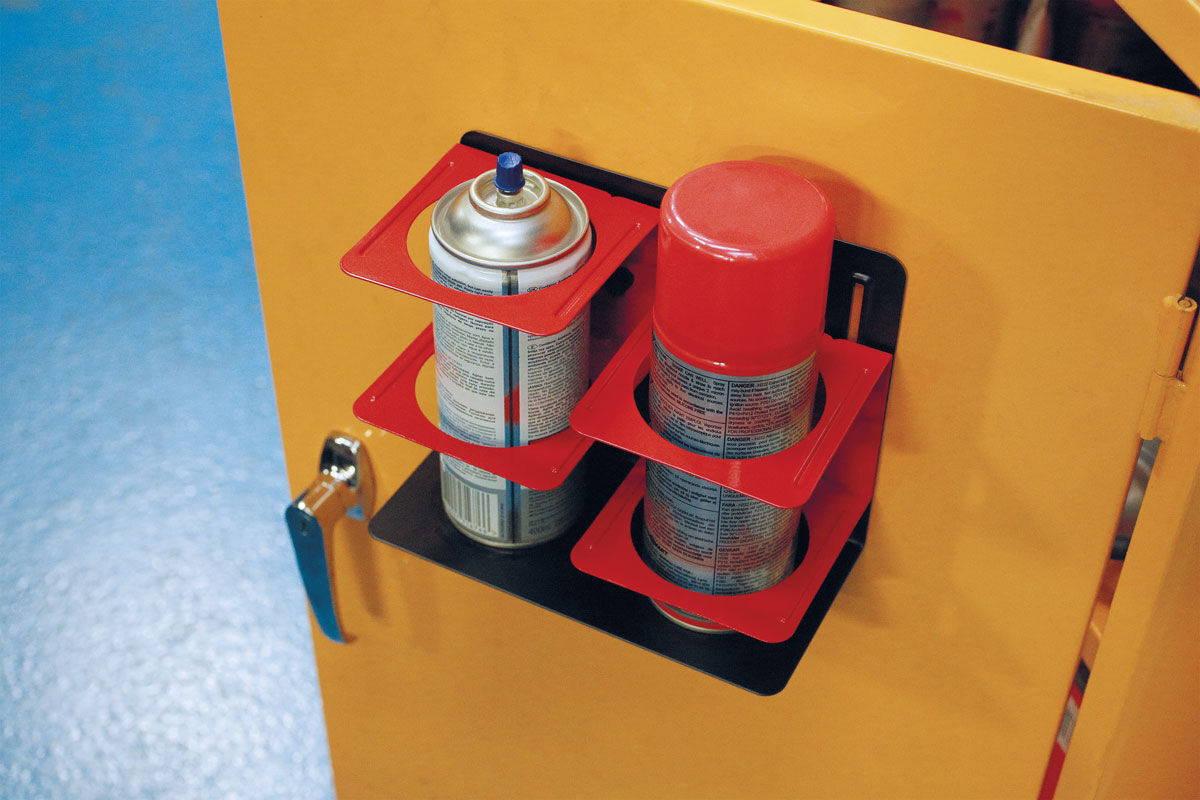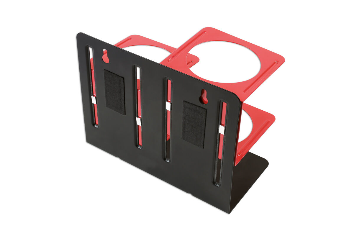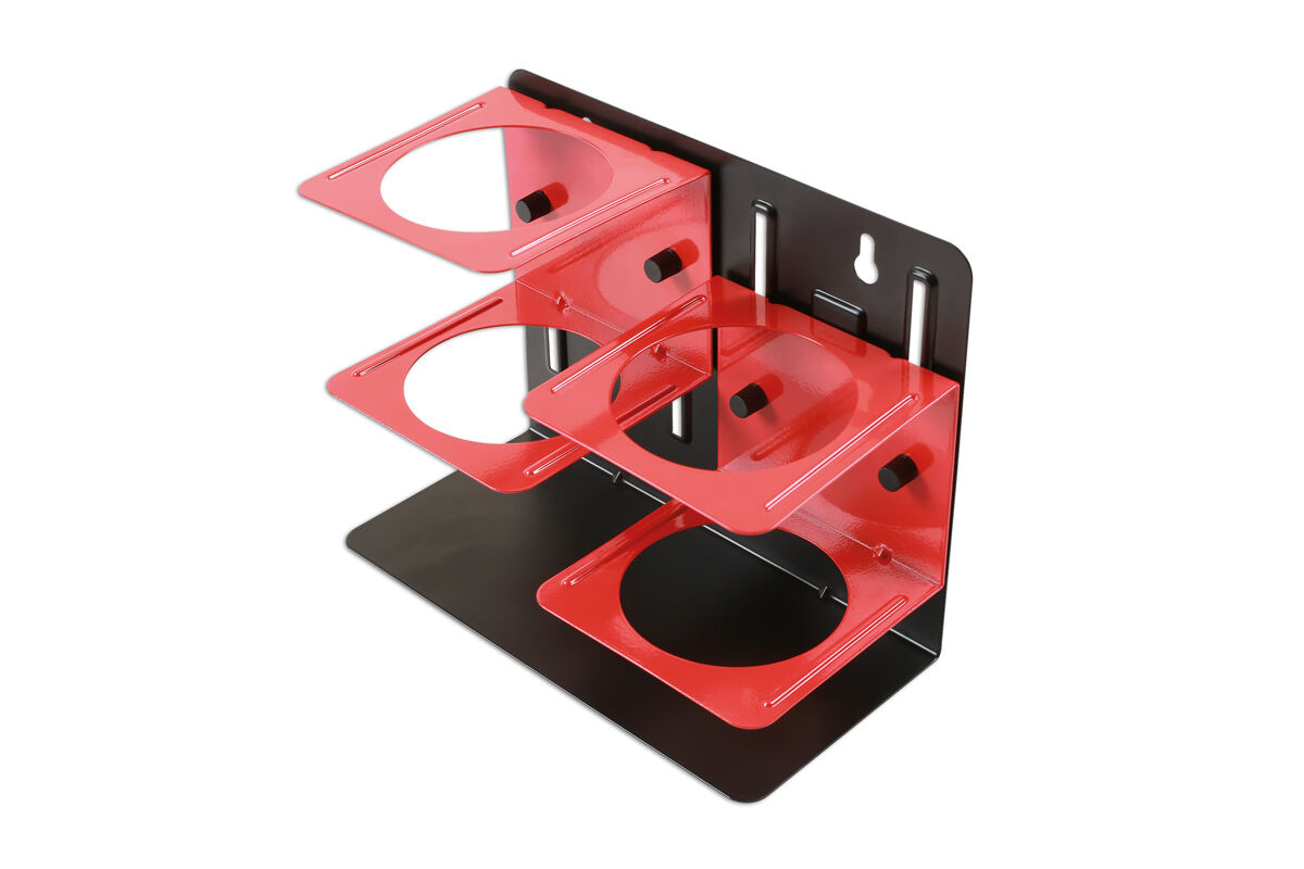 Soporte metálico magnético para almacenar 2 latas de aerosol de hasta 75 mm (3”) de diámetro.- Dimensiones: 200 x 100 x 160 mm