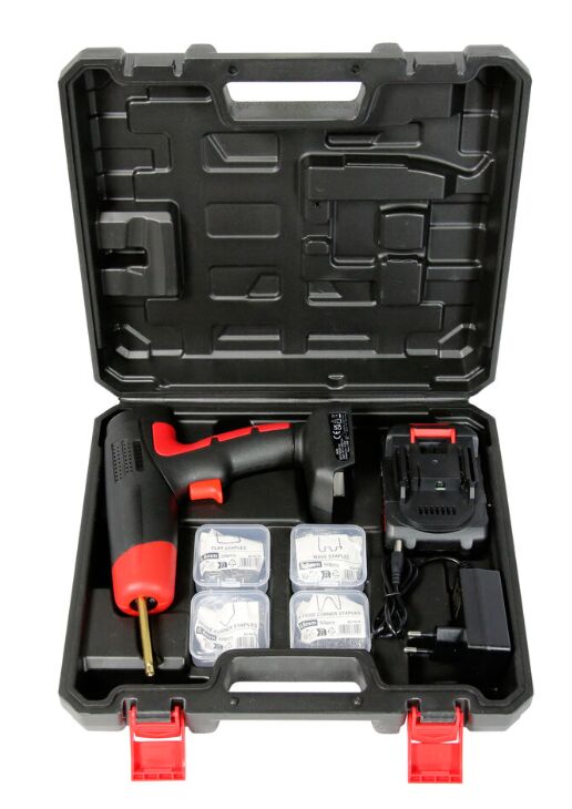 Esta grapadora térmica Telwin es perfecta para reparaciones sólidas y permanentes de roturas, grietas y fisuras en piezas de plástico rígido y flexible mediante grapas calientes. El dispositivo es muy ligero, portátil y está equipado con una batería de litio para un funcionamiento autónomo cuando no hay una toma de corriente cercana.