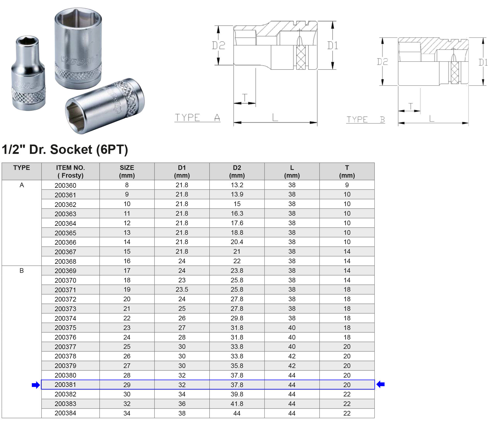 VASO 1/2” 6 CARAS MÉTRICO 29 MM Artículo: 200381