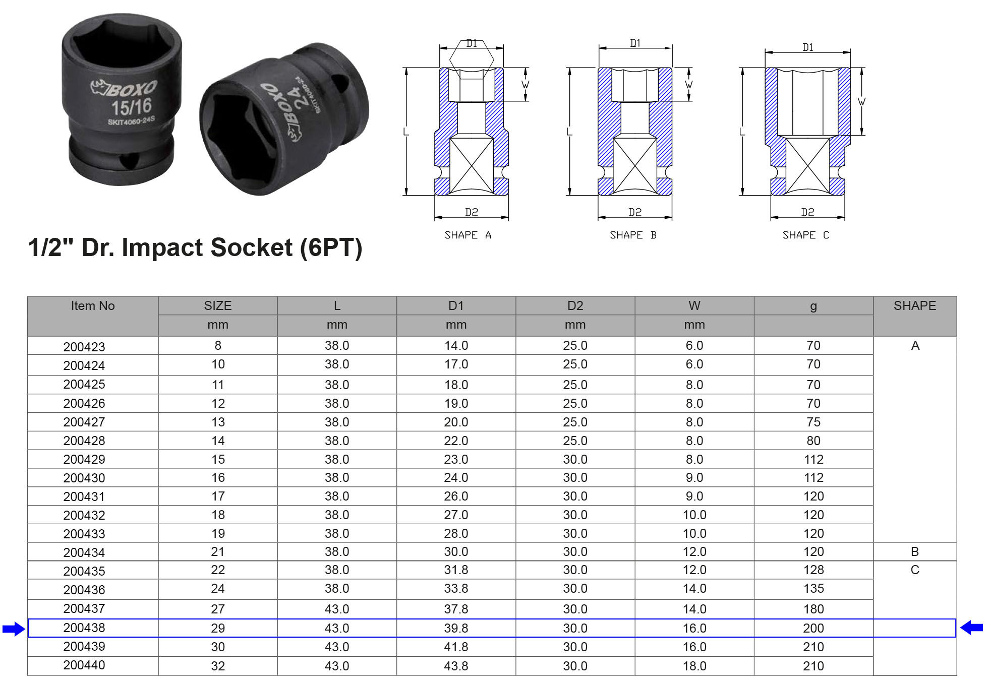 VASO DE IMPACTO 1/2” 6 CARAS MÉTRICO 29 MM Artículo: 200438