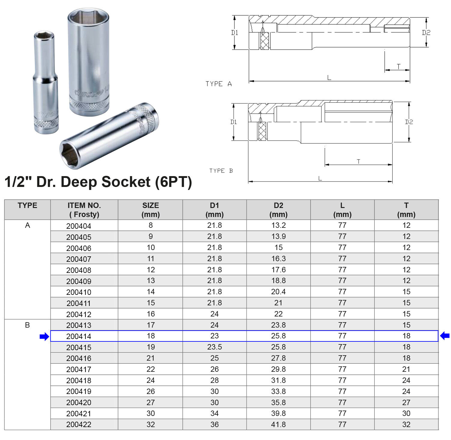 VASO LARGO 1/2” 6 CARAS MÉTRICO 18 MM Artículo: 200414