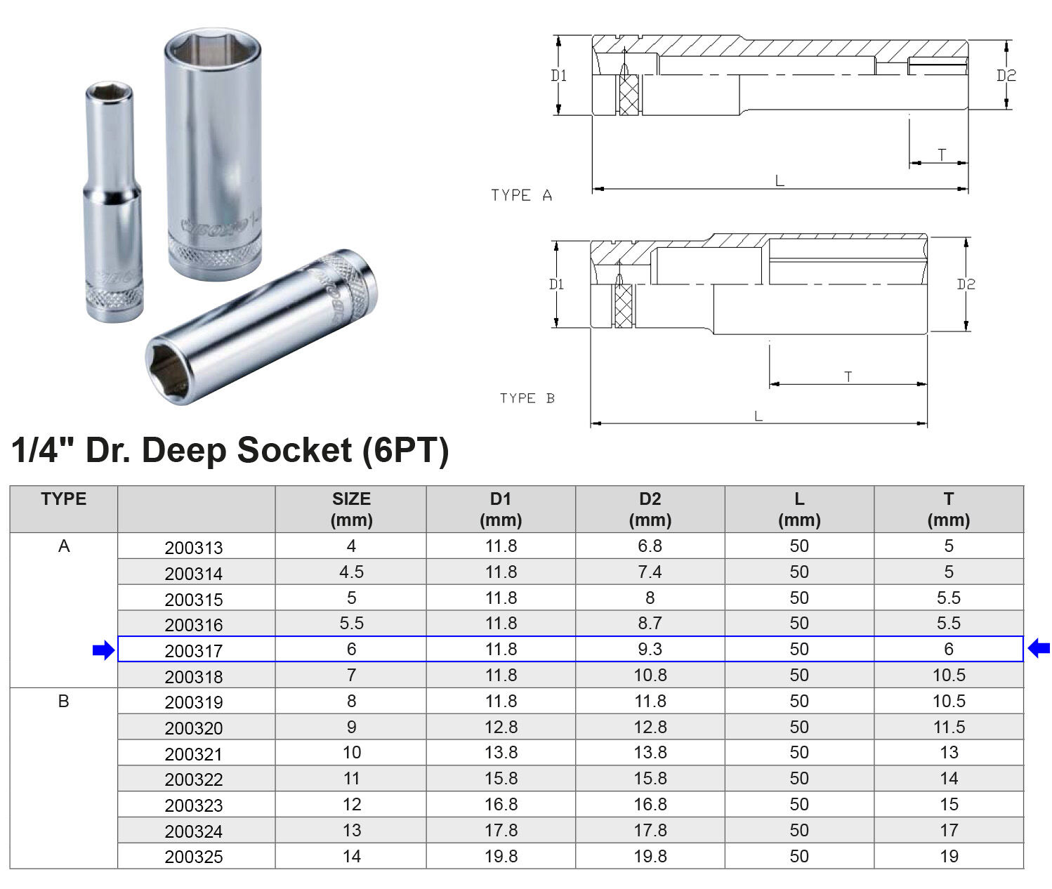 VASO LARGO 1/4” 6 CARAS MÉTRICO 6 MM Artículo: 200317