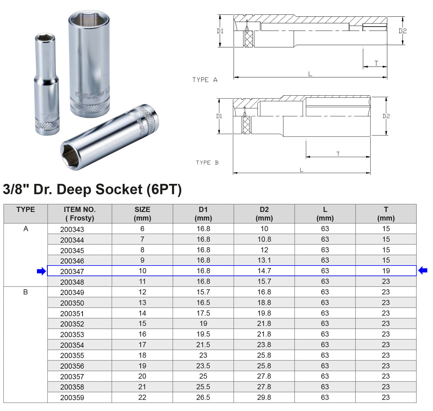 VASO LARGO 3/8” 6 CARAS MÉTRICO 10 MM Artículo: 200347