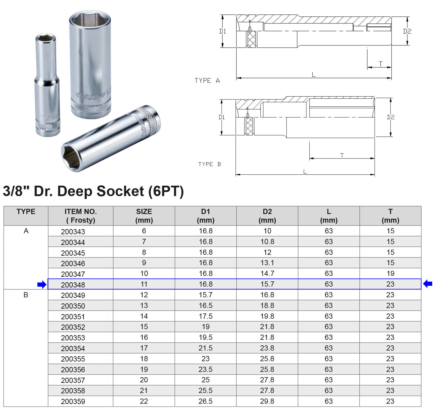 VASO LARGO 3/8” 6 CARAS MÉTRICO 11 MM Artículo: 200348