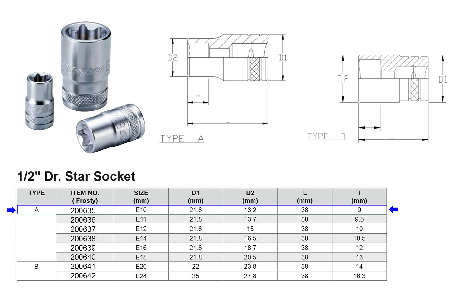 VASO TX 6 CARAS E10 1/2” Artículo: 200635