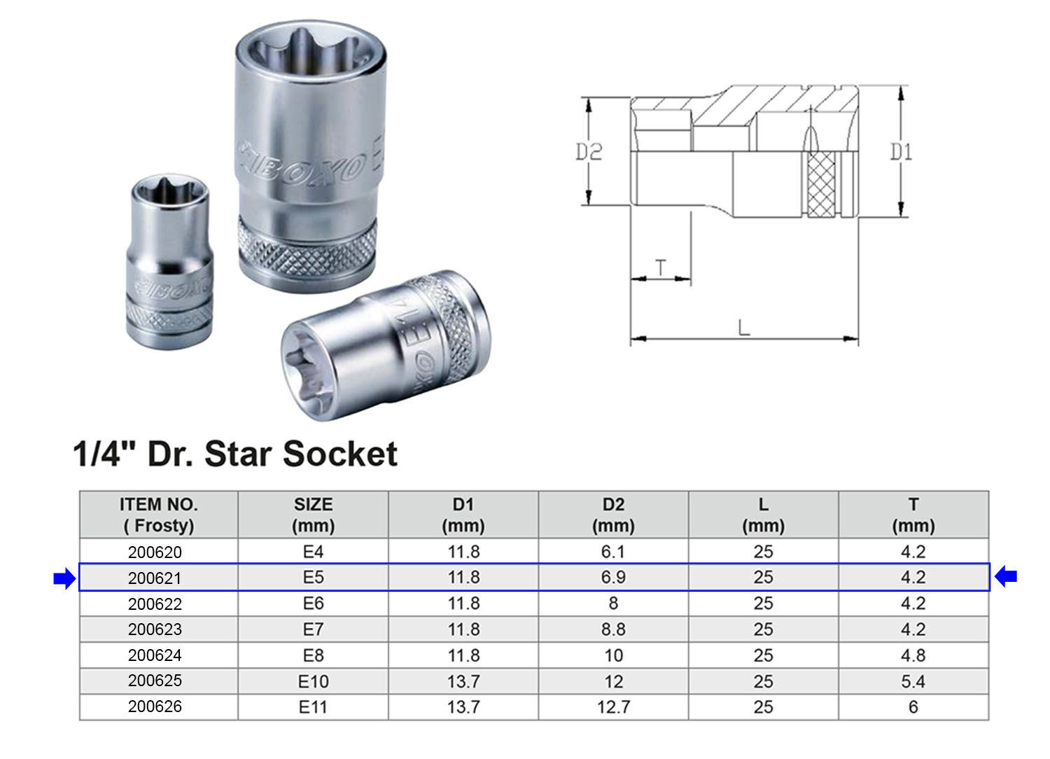 - Tamaño: E5 mm