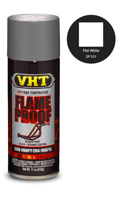 VHT FlameProof™ Coating renueva y prolonga la vida útil de las superficies expuestas a temperaturas extremadamente altas. VHT FlameProof™ ofrece un bonito acabado mate, a base de cerámica siliconada. VHT FlameProof™ Coating es resistente a temperaturas de 1093°C, a los rayos UV y a los productos químicos. Este recubrimiento es ideal para piezas de admisión/escape u otras piezas expuestas a temperaturas extremas.